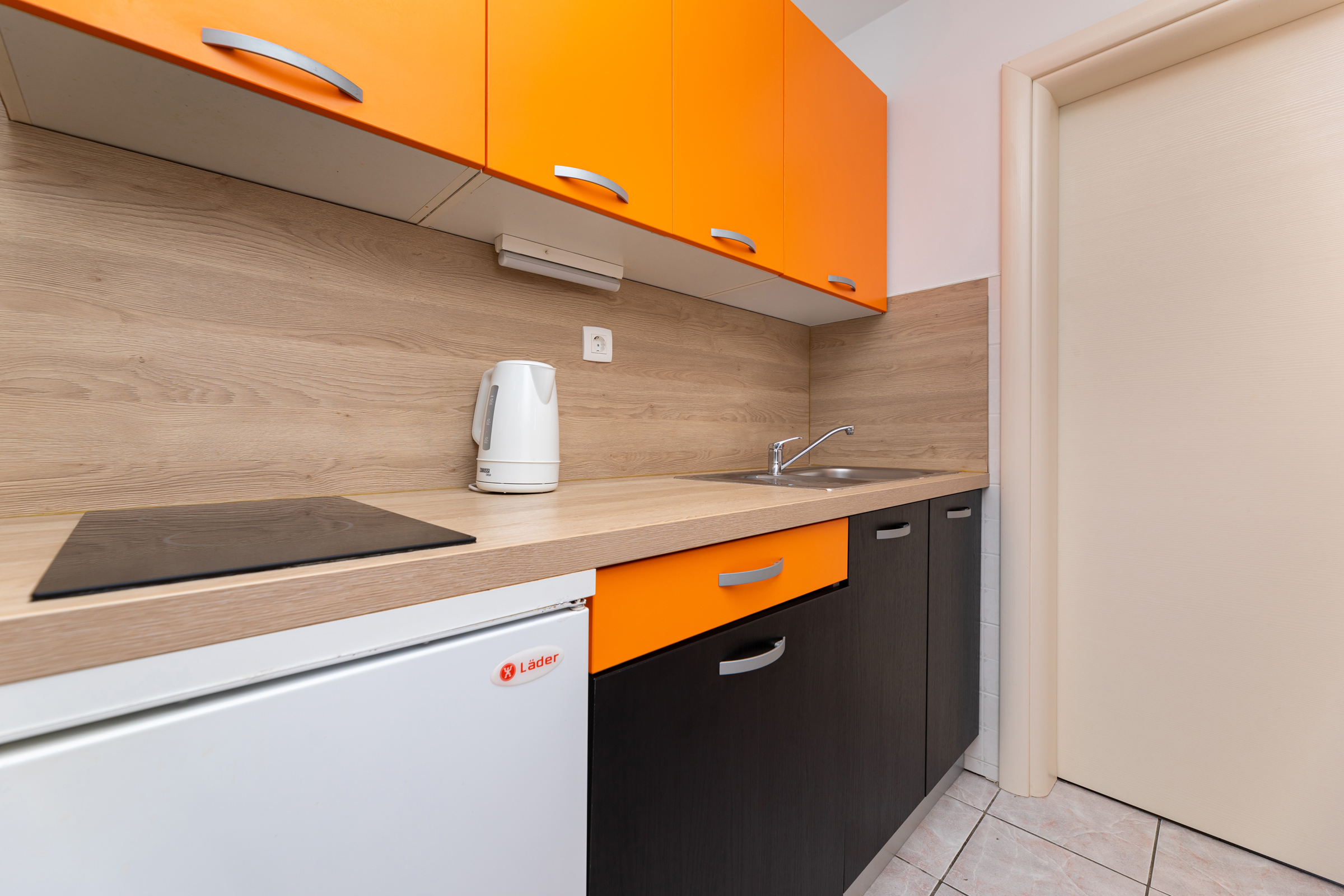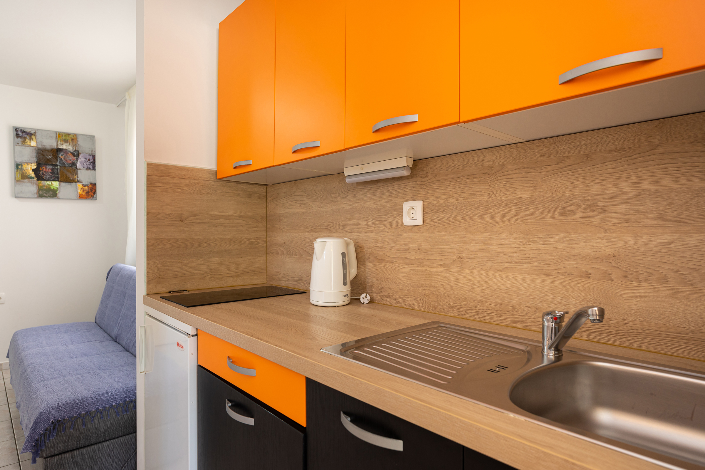 Svi apartmani su opremljeni sa: SAT TV, WIFI, klima, sef. Kuhinja sa frižiderom i ledenicom, posuđem i priborom za jelo, kuhalom za vodu, kafe mašinom, indukcijskim štednjakom ili staklo-keramičkom pločom s dva mjesta za kuhanje, mikrovalnom. Kupaonica / WC s tušem i sušilom za kosu.