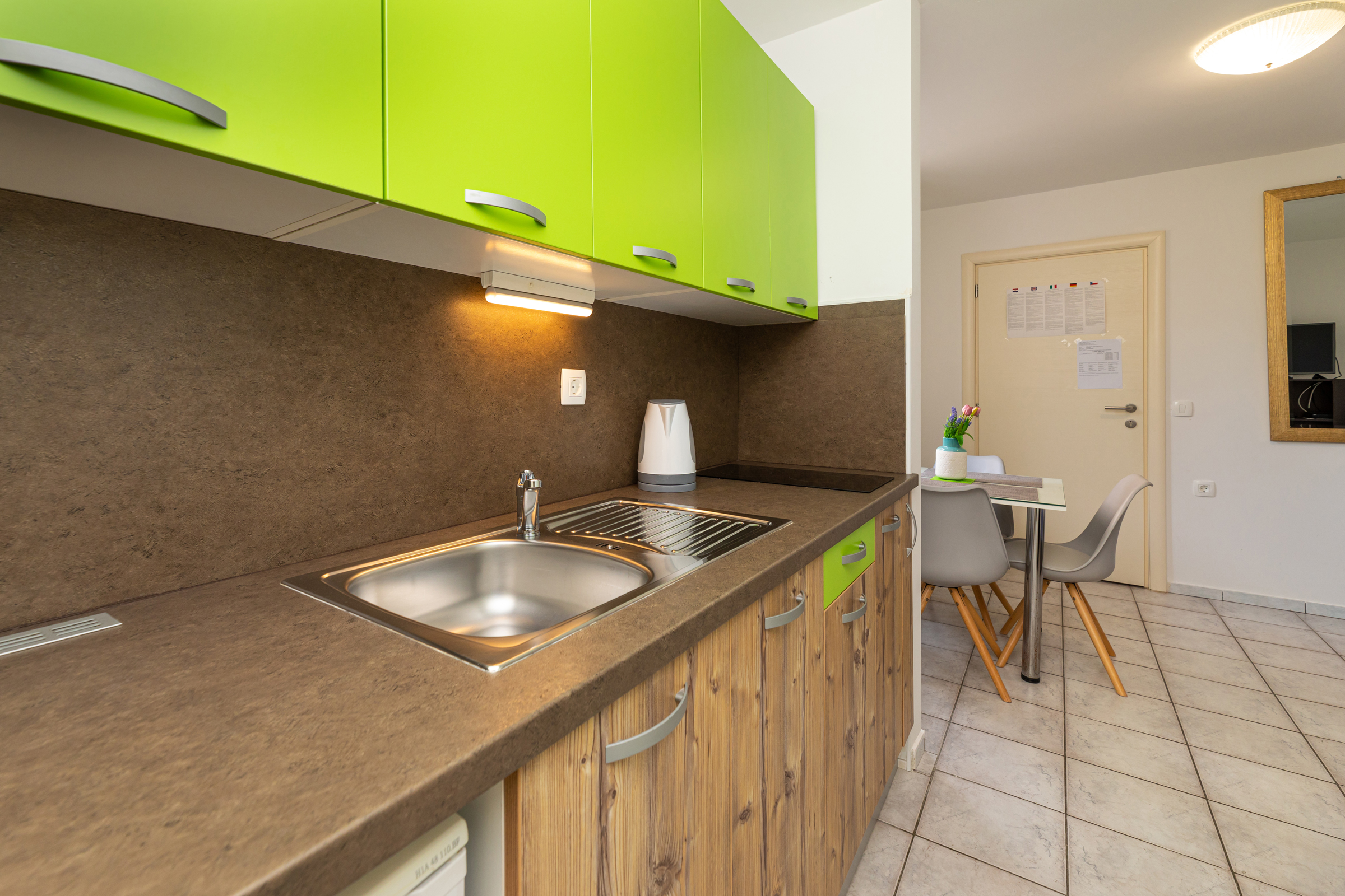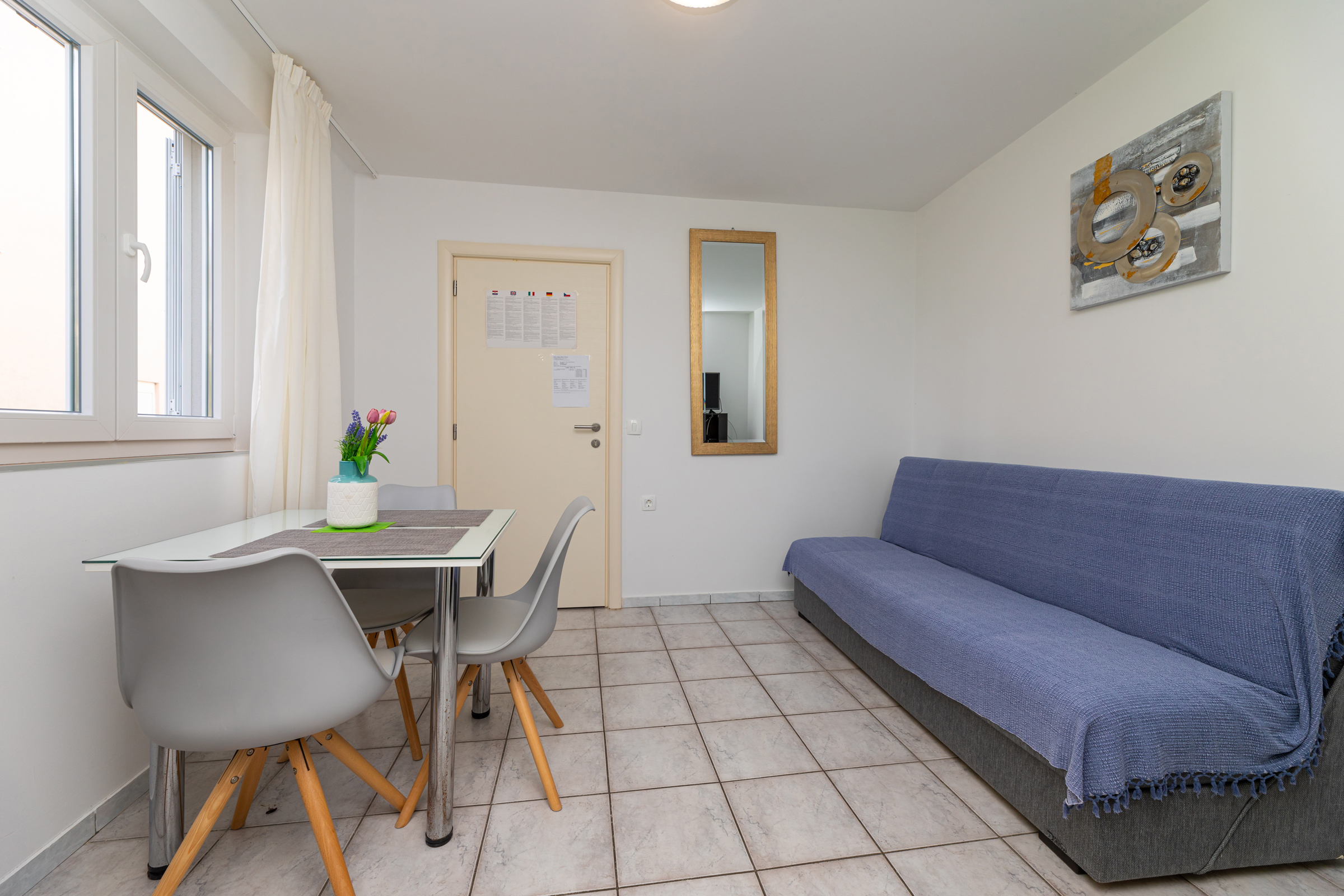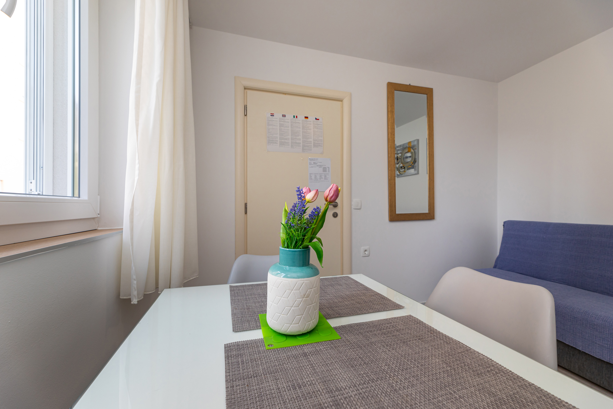 Ručnici i kuhinjske krpe mijenjaju se nakon 3 dana za boravke dulje od 4 dana, a posteljina + ručnici svakih 7 dana za boravke dulje od 8 dana. Gostima je još na raspolaganju (na upit) – dječji krevetić. U ponudi je i korištenje usluga pranja i sušenja veša, što se dodatno naplaćuje.