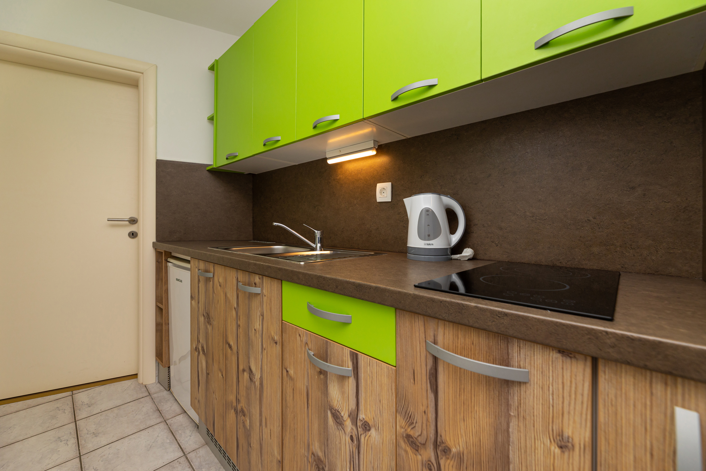 Svi apartmani su opremljeni sa: SAT TV, WIFI, klima, sef. Kuhinja sa frižiderom i ledenicom, posuđem i priborom za jelo, kuhalom za vodu, kafe mašinom, indukcijskim štednjakom ili staklo-keramičkom pločom s dva mjesta za kuhanje, mikrovalnom. Kupaonica / WC s tušem i sušilom za kosu.